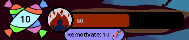 During battles, adults will try to demotivate you. If your motivation drops too low, it's Game Over, but you can eat candy in the shop to regain it.
